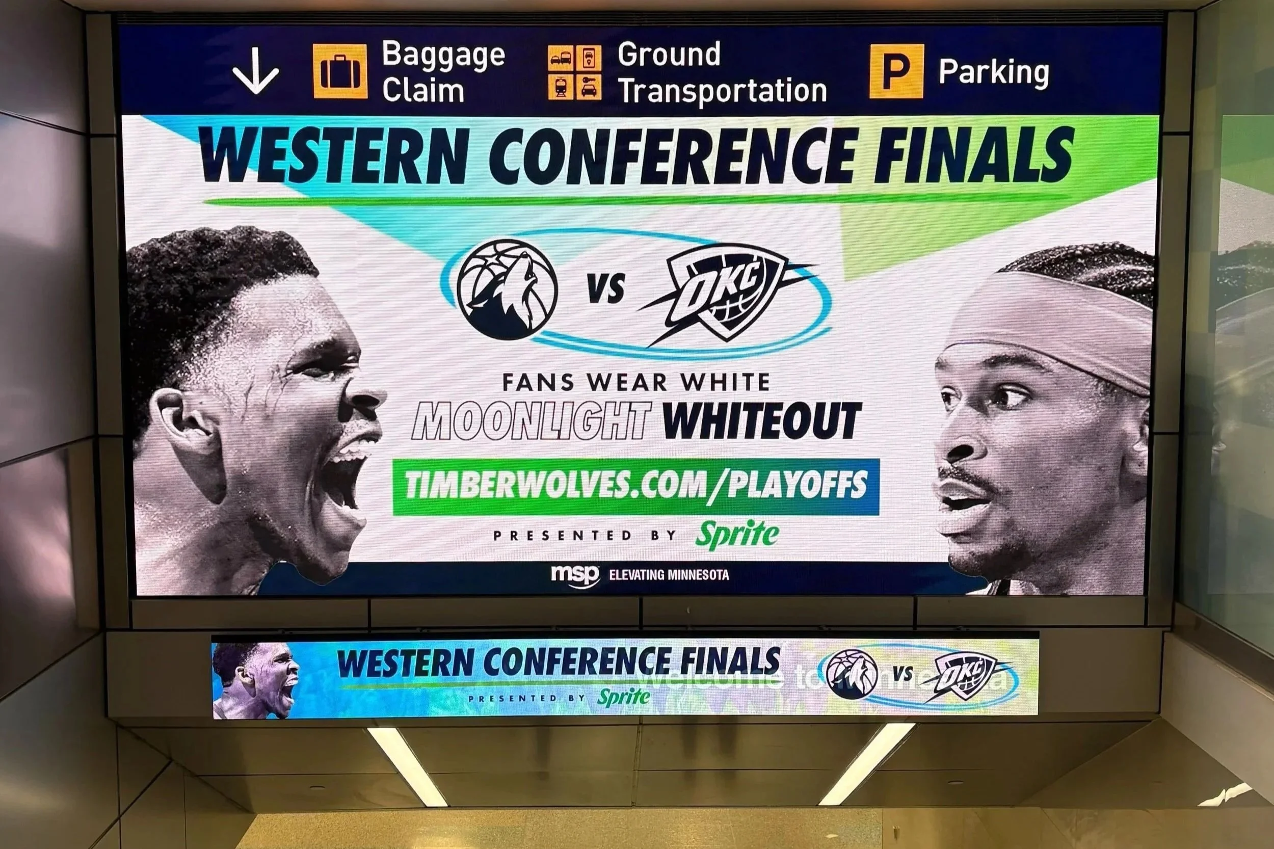 The Timberwolves secured a spot in the 2025 NBA Playoffs making a deep run into the Western Conference Finals for the second year in a row. WolvesBack continued to be our rally cry. I created OOH billboards that were displayed throughout the entirety of the NBA Finals both in downtown Minneapolis and in the Minneapolis International Airport.